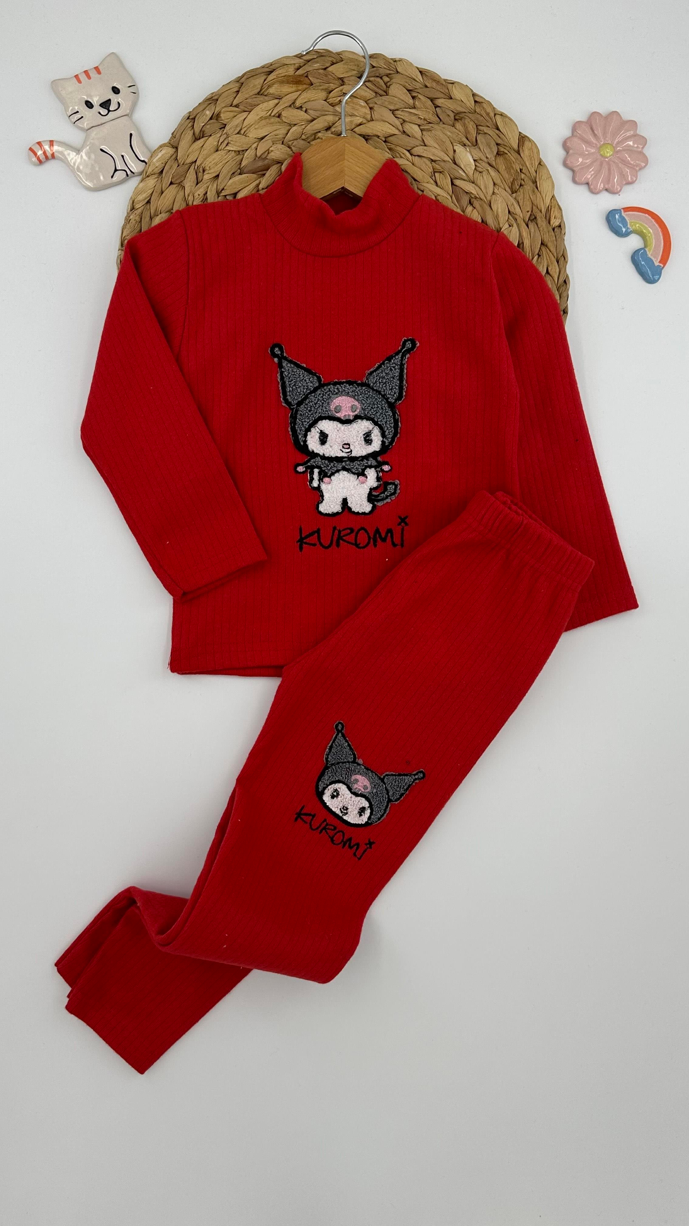 1836 Kromi Nakışlı Fitilli Kız Çocuk Takım KIRMIZI