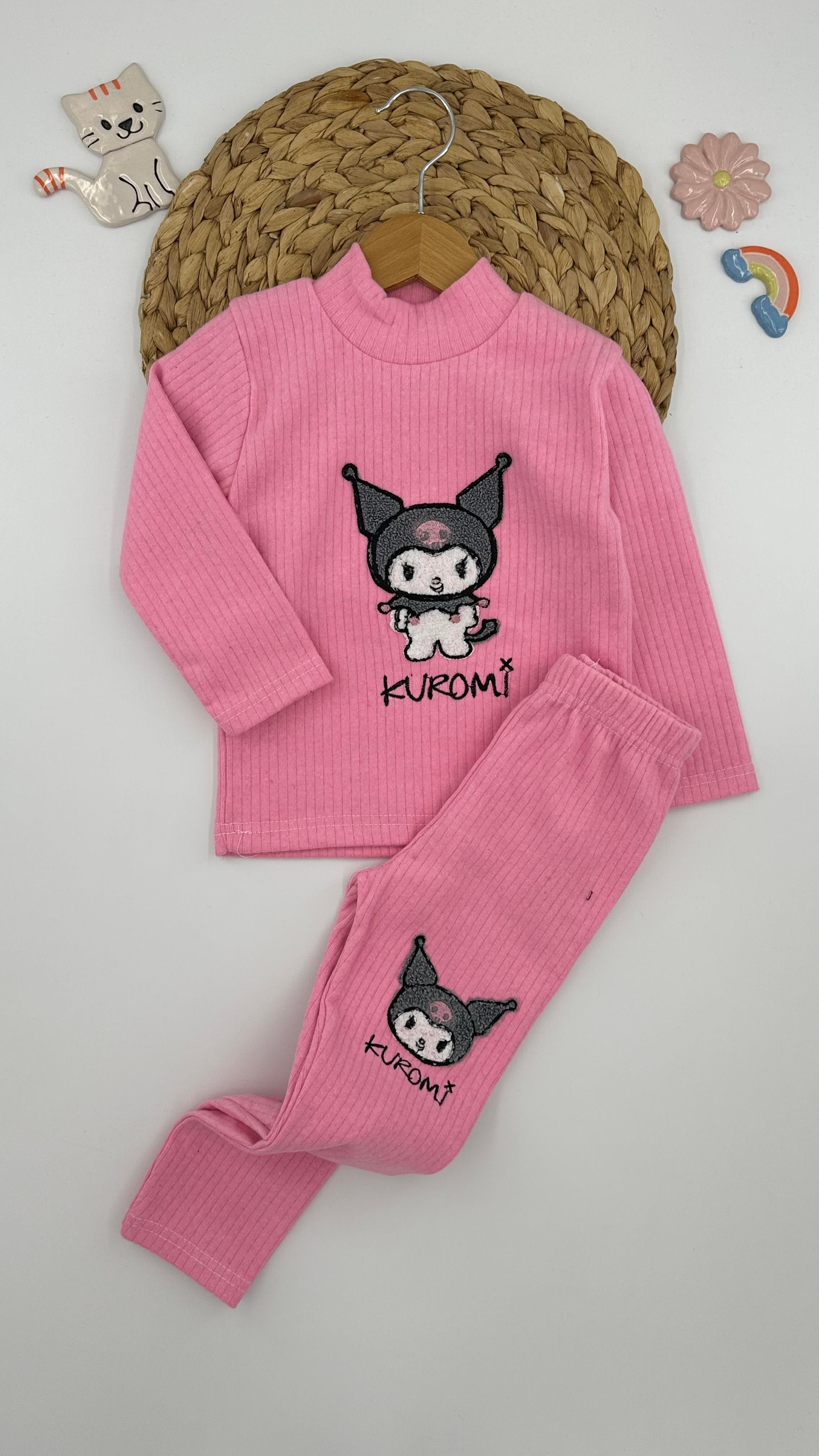 1836 Kromi Nakışlı Fitilli Kız Çocuk Takım PEMBE