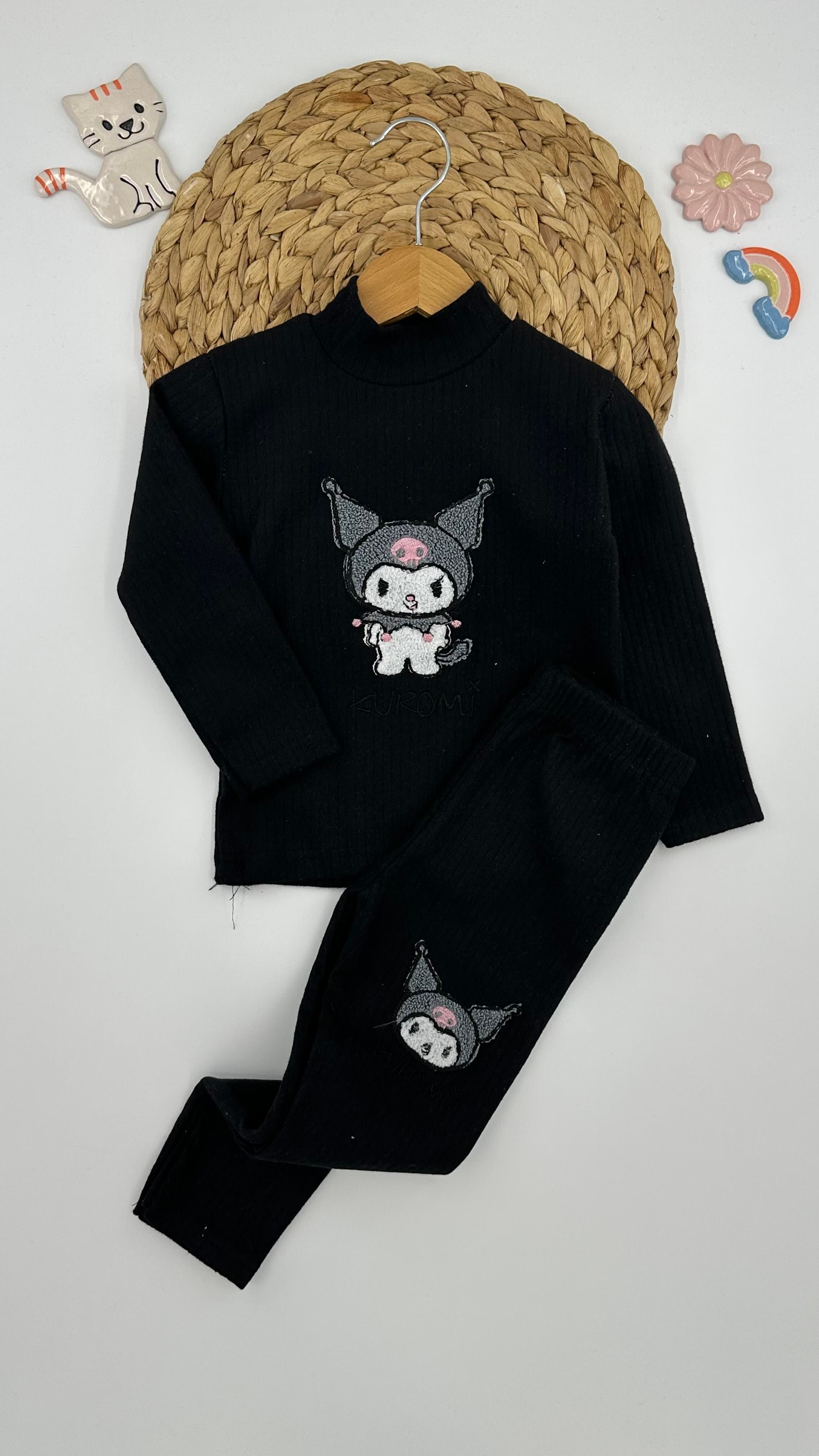 1836 Kromi Nakışlı Fitilli Kız Çocuk Takım SİYAH