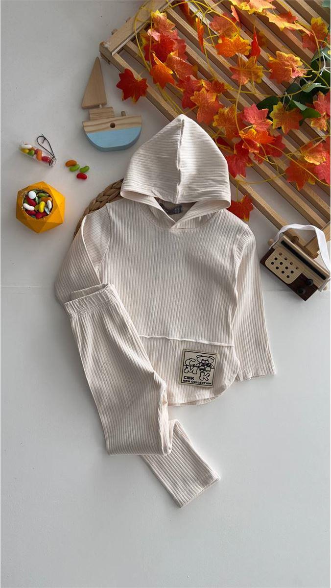 1901058 Ayıcık Armalı Kapişonlu Kız Çocuk Takım BEYAZ