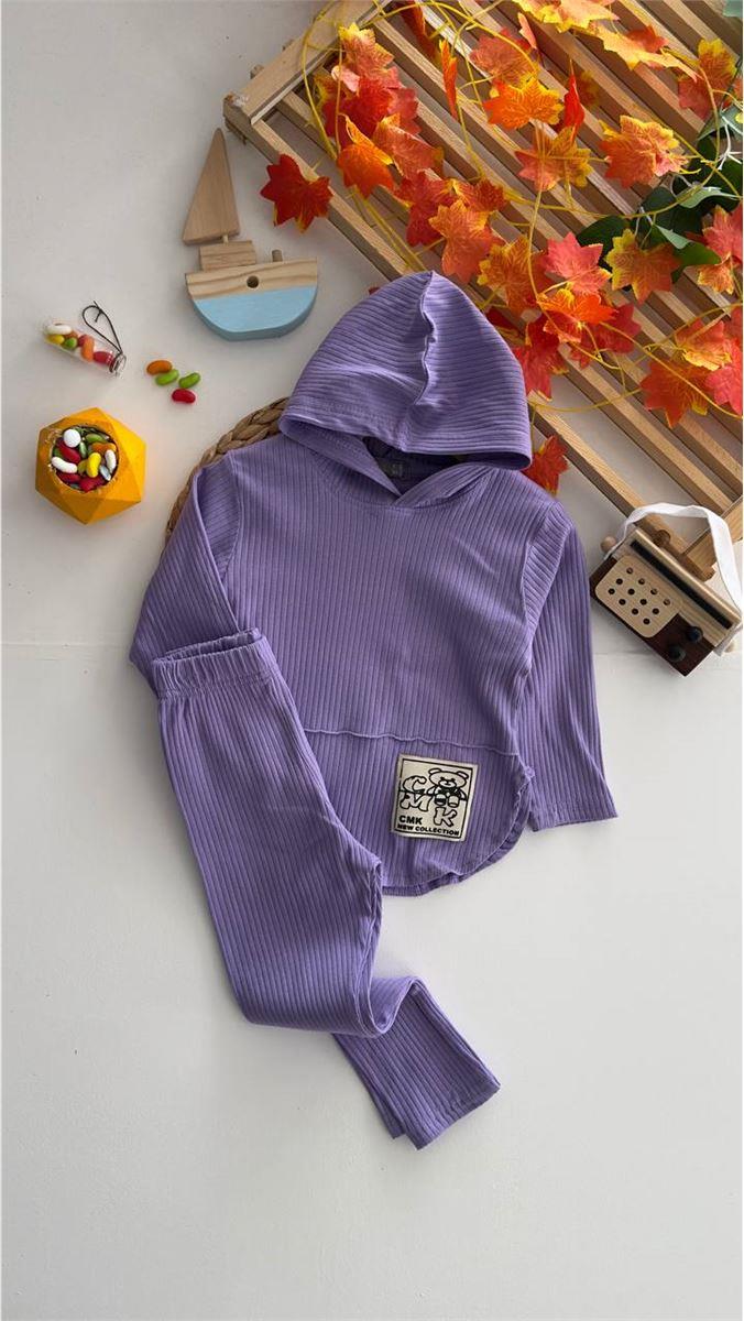 1901058 Ayıcık Armalı Kapişonlu Kız Çocuk Takım LİLA