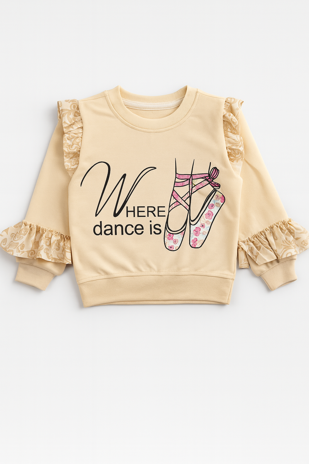 190405 Here Dance Kol Fırfırlı Swetshirt KREM