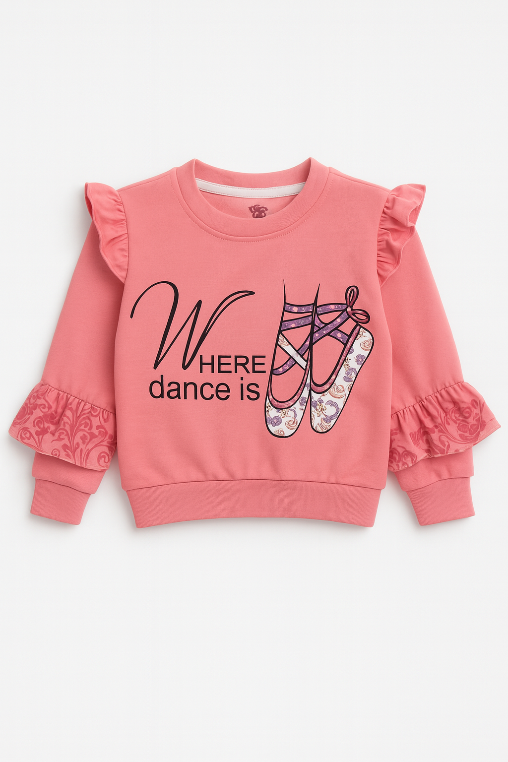 190405 Here Dance Kol Fırfırlı Swetshirt PEMBE