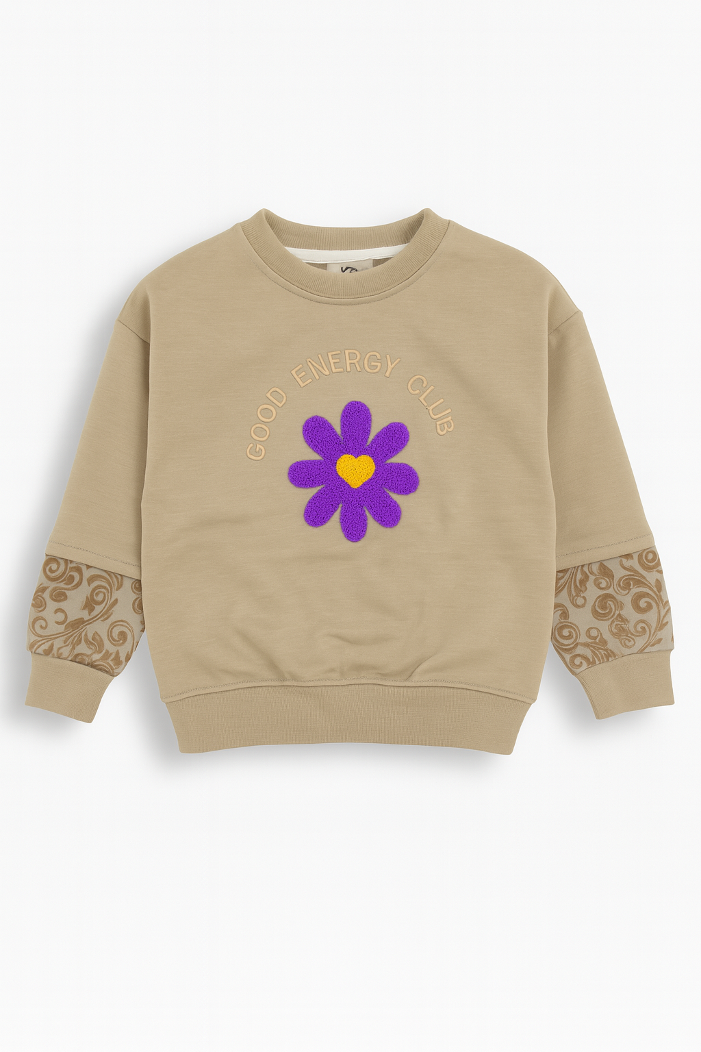 190425 Ponch Çiçek Desenli Kız Çocuk Swetshirt TAŞ