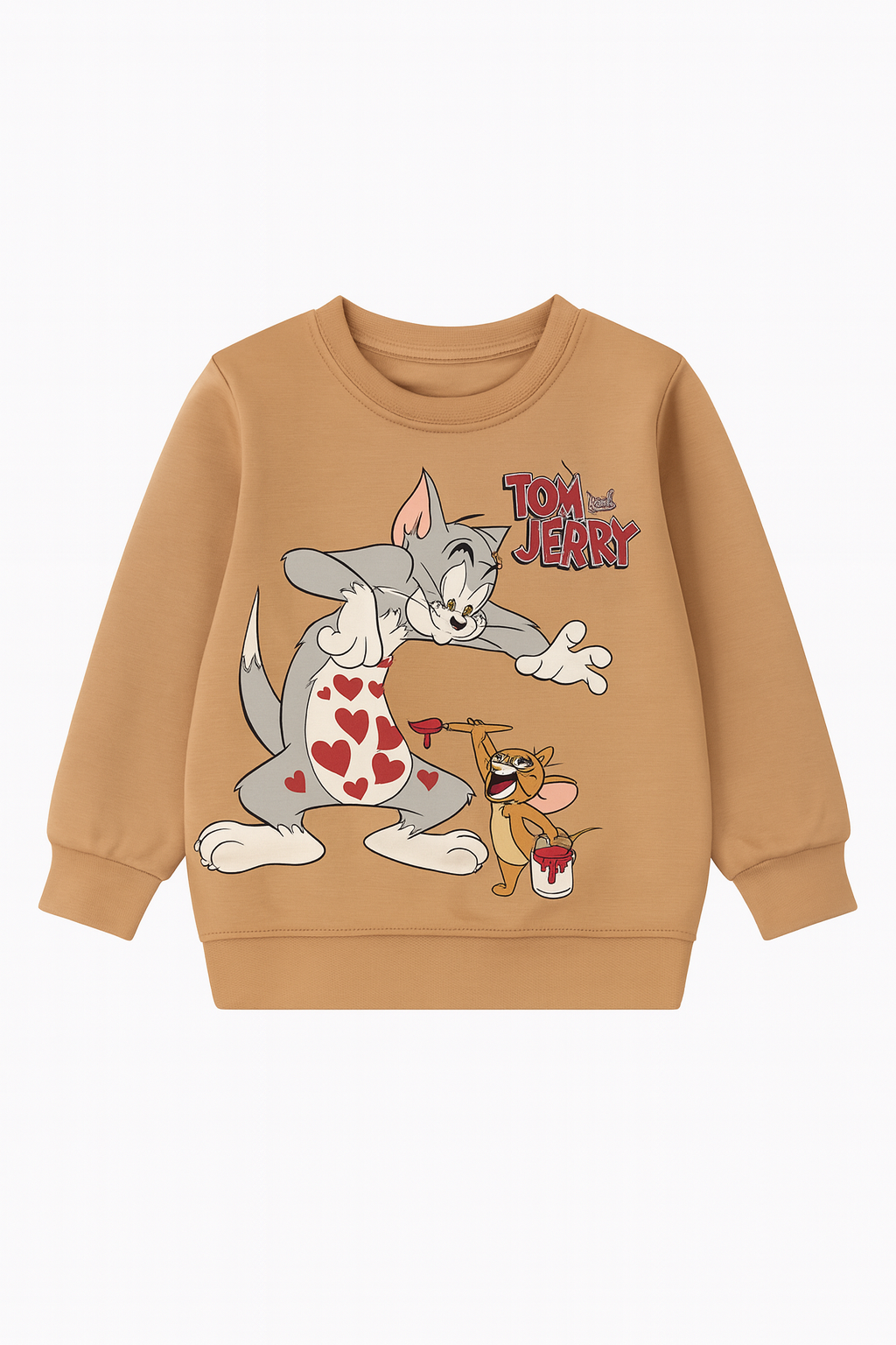 190435 Tom Ve Jerry Desenli Kız Çocuk Swetshirt BEJ