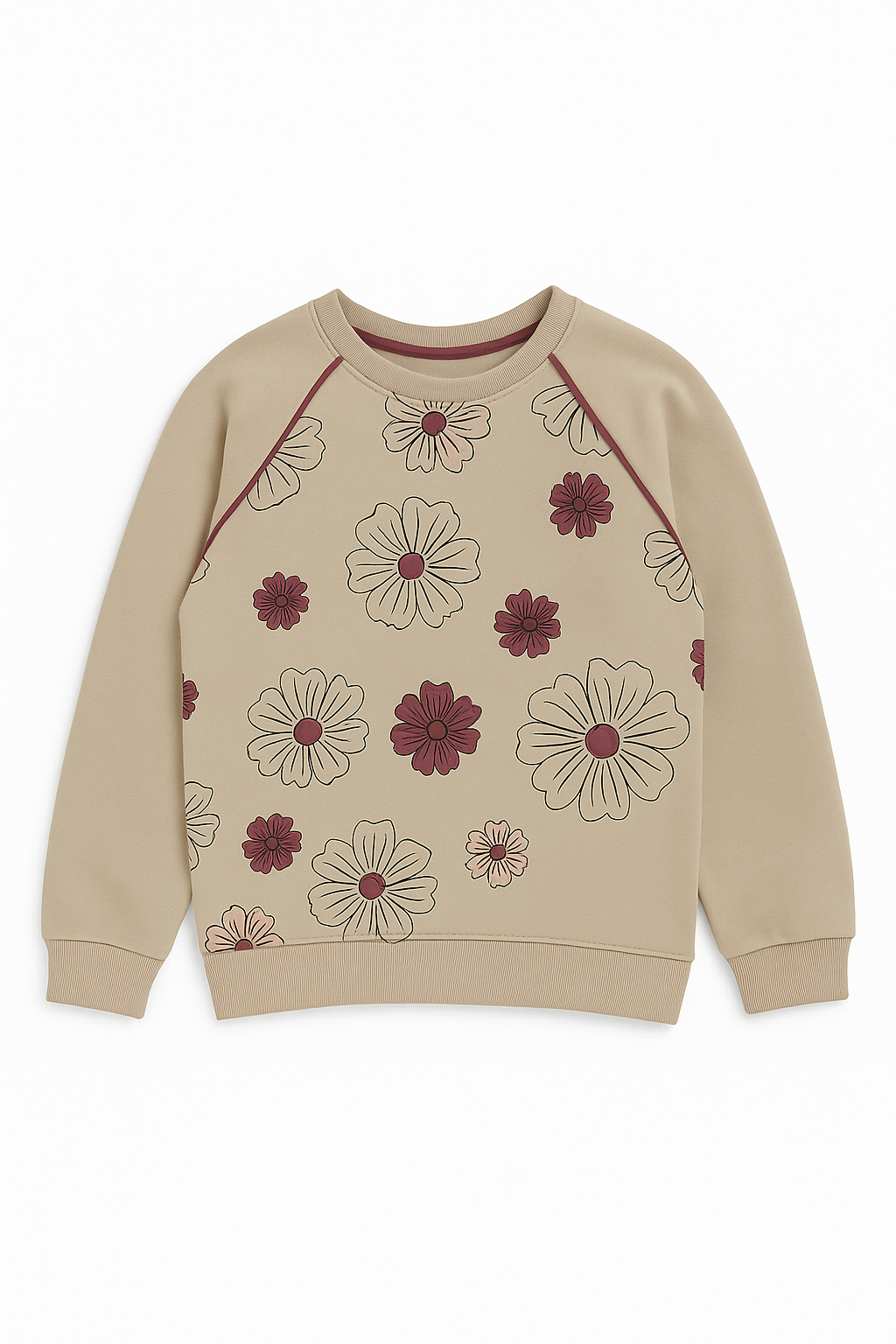 190465 Çiçek Desenli Swetshirt BEJ