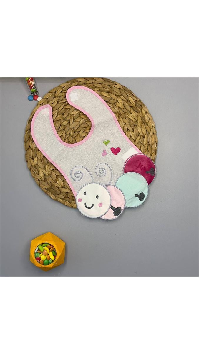 1908 Tırtıl  Dış Yüzey Pamuk İç Yüzey Poluüret Mama Önlüğü PEMBE