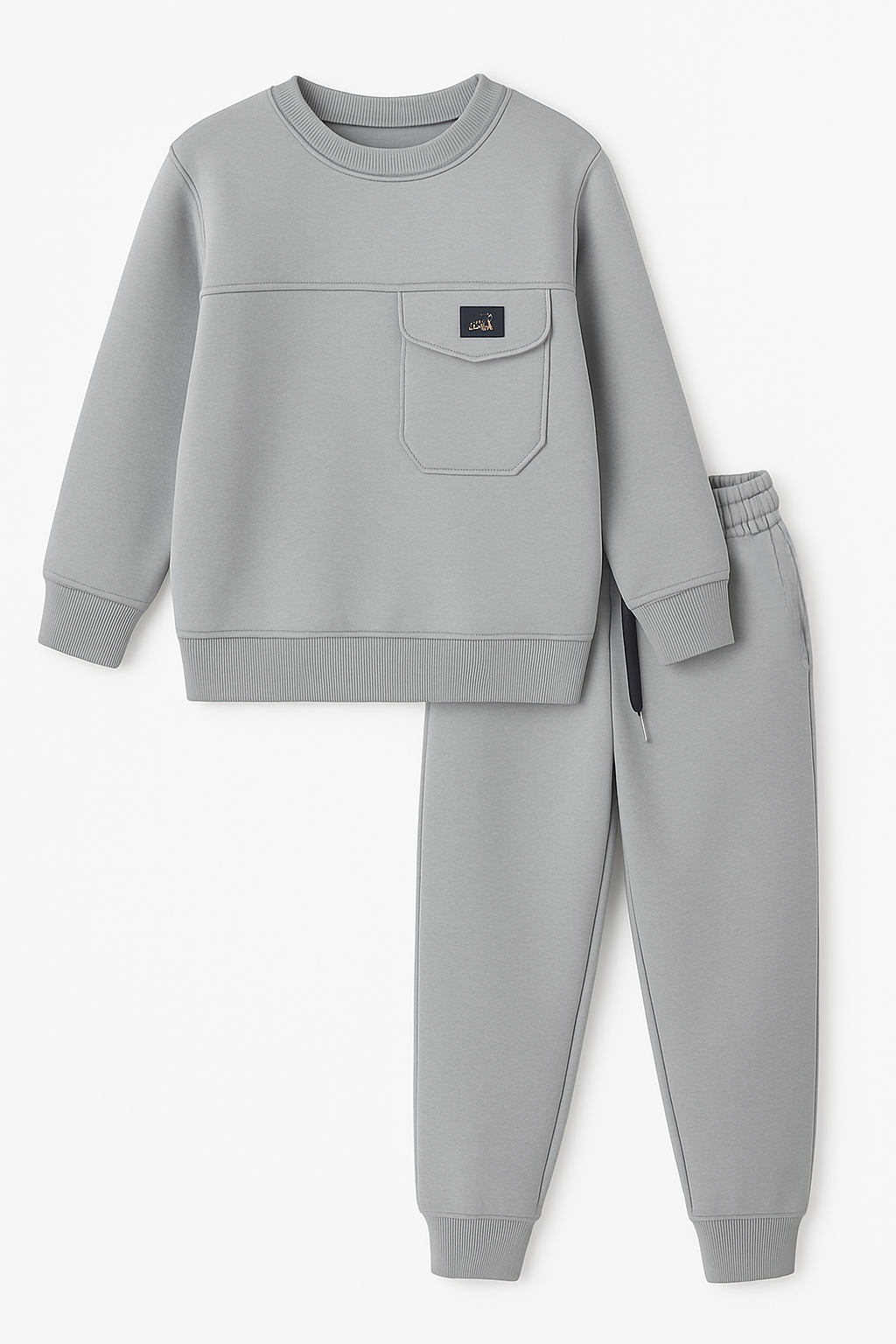 1912 Cep Detaylı Üç İplik Şardonlu Çocuk Takım GRİ