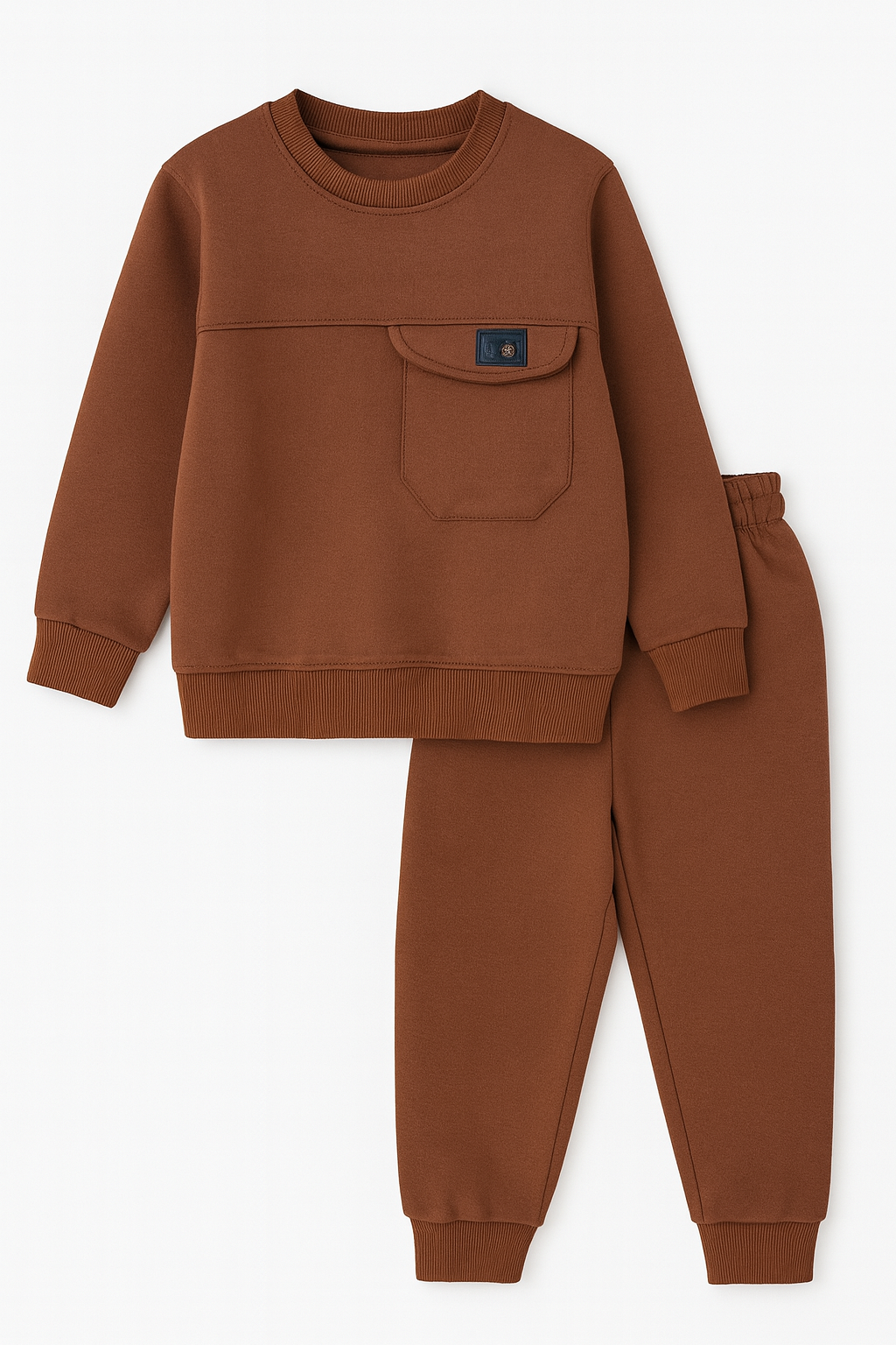 1912 Cep Detaylı Üç İplik Şardonlu Çocuk Takım KRMT