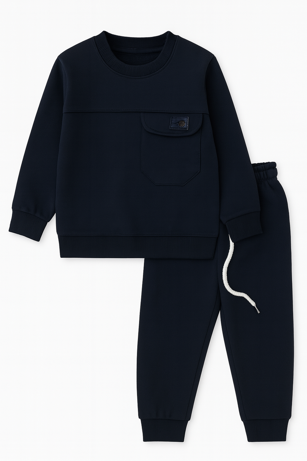 1912 Cep Detaylı Üç İplik Şardonlu Çocuk Takım LACIVERT