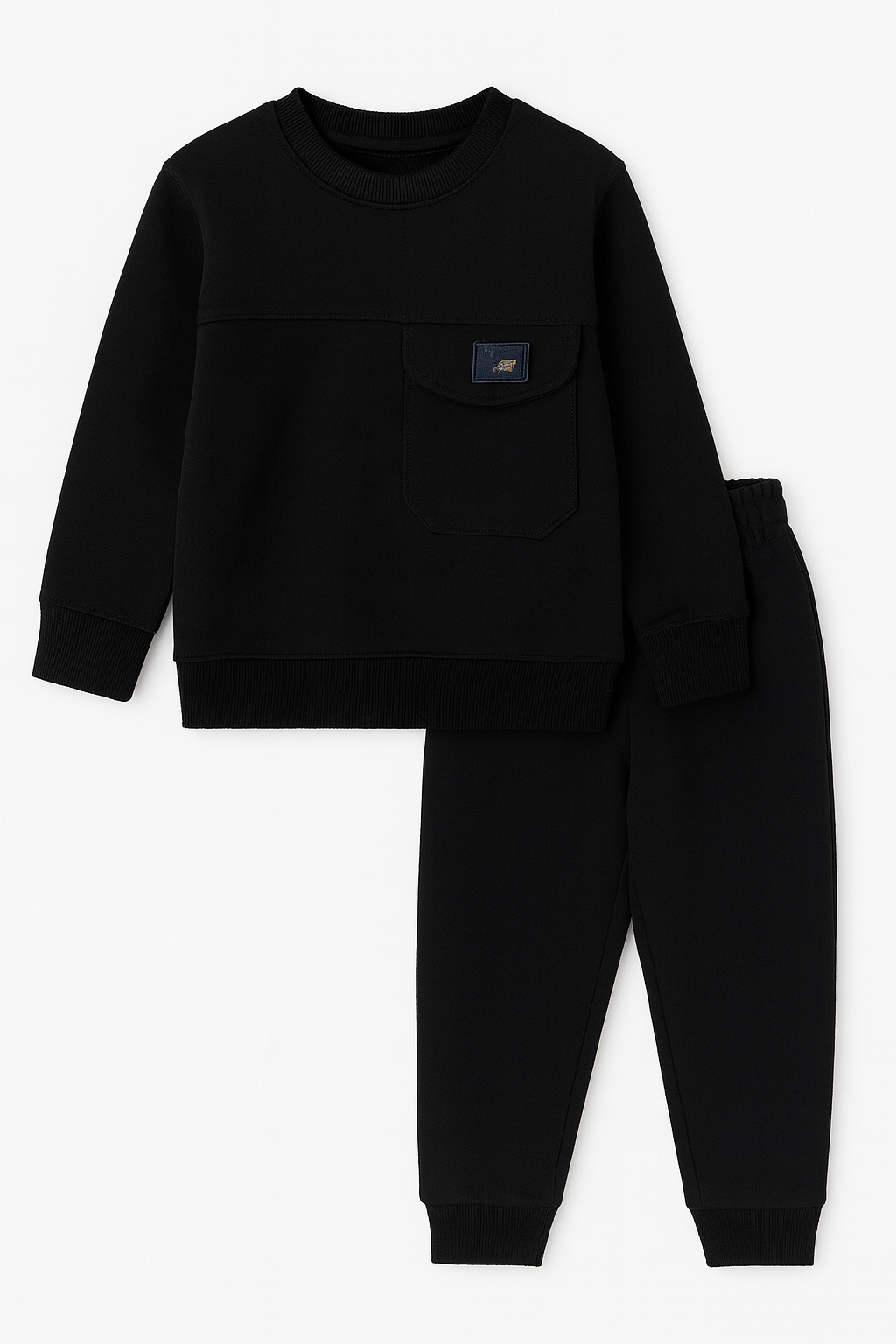 1912 Cep Detaylı Üç İplik Şardonlu Çocuk Takım SİYAH