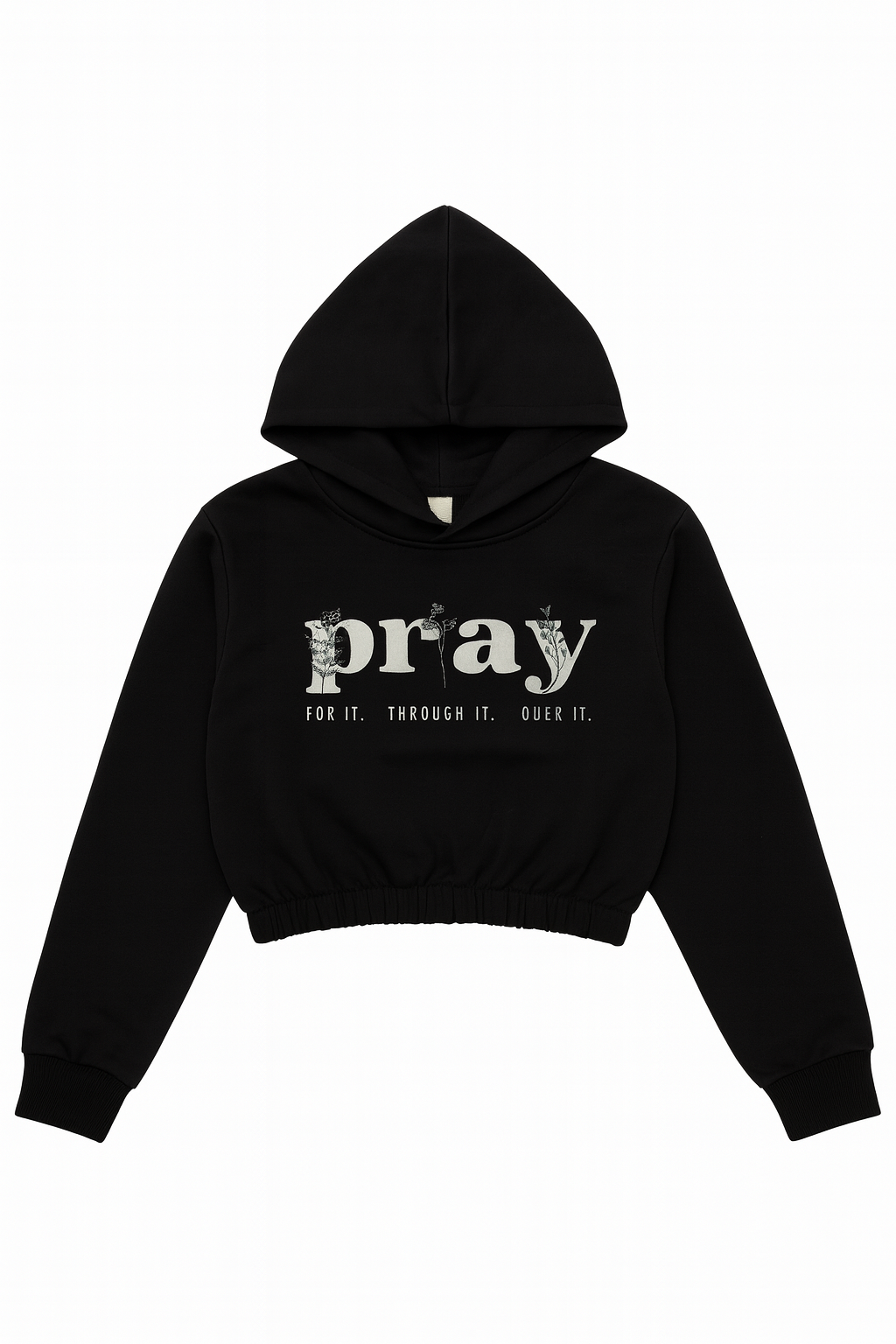 2001-1 Pray Baskılı Kapişonlu Kız Sweat SİYAH