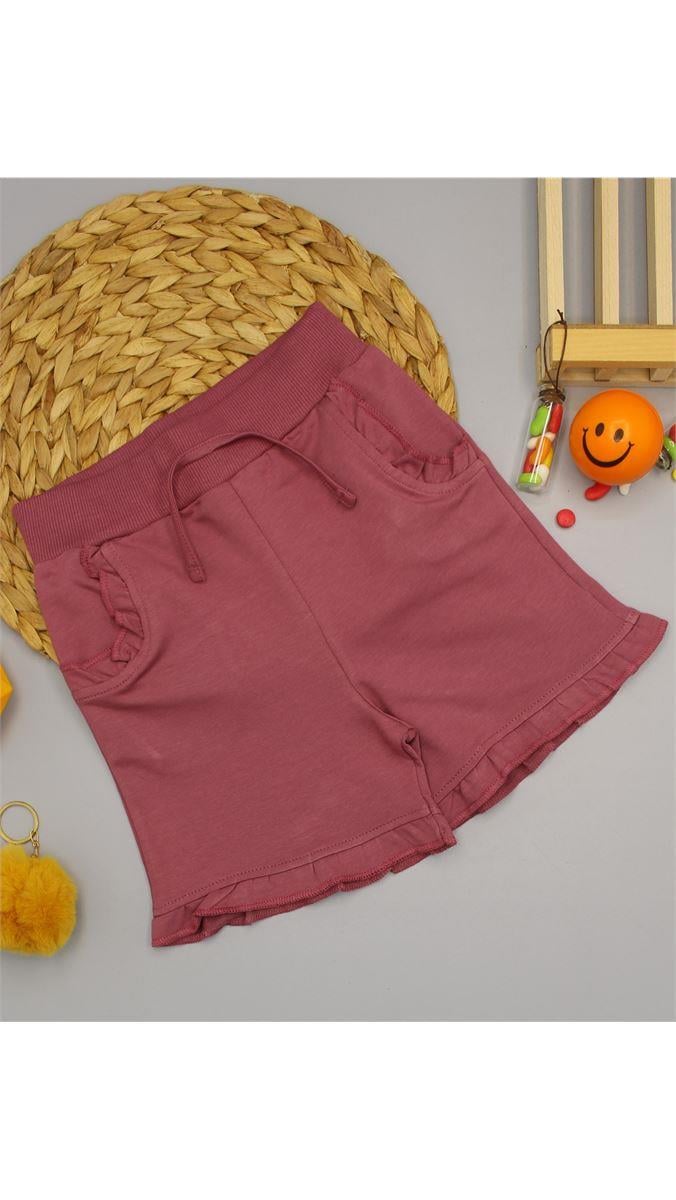 20046 Paça ve Cep Ağızı Fırfırlı Kız Şort GÜL KURUSU
