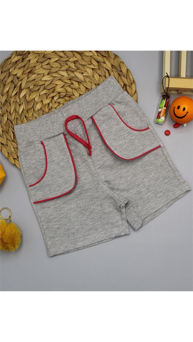 20047 Cep Ağızlı Biyeli Körük Cepli Kız Şort GRİ