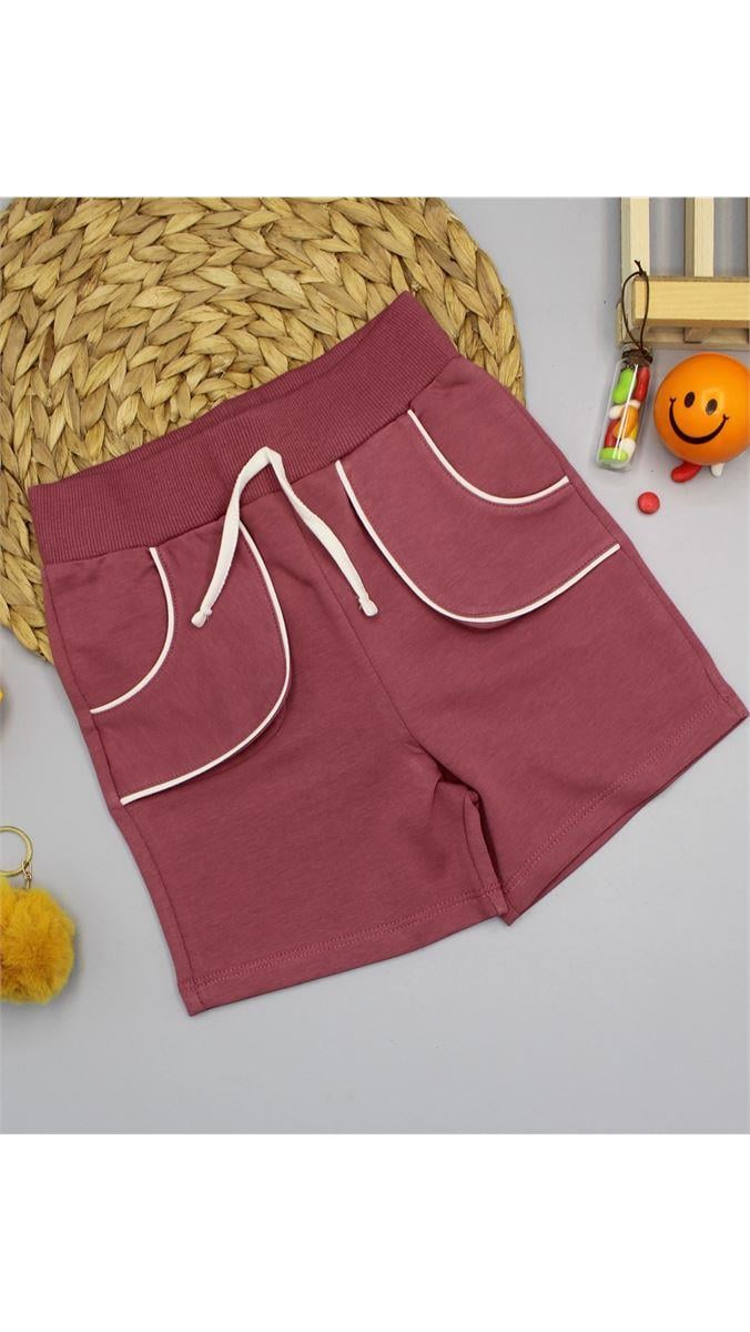 20047 Cep Ağızlı Biyeli Körük Cepli Kız Şort GÜL KURUSU