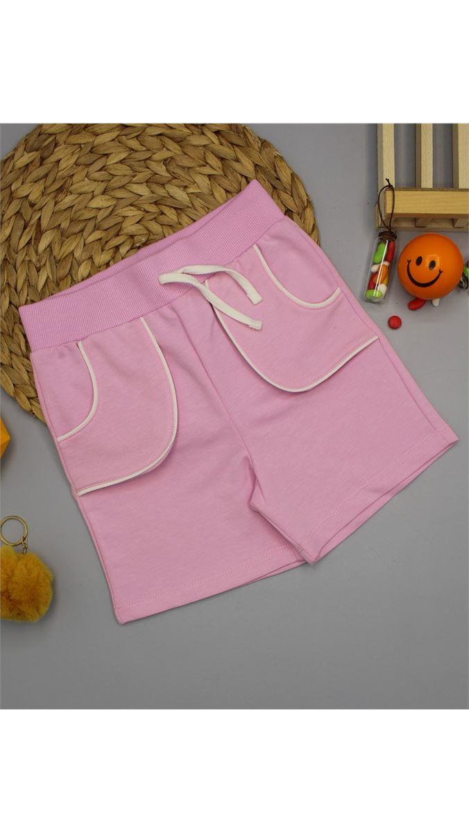 20047 Cep Ağızlı Biyeli Körük Cepli Kız Şort PEMBE