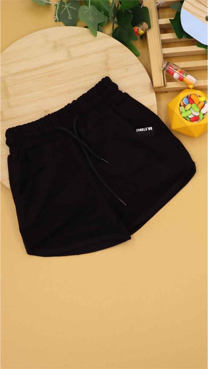 20073-1 Cep Ağızlı Biyeli Kız Şort (9-12 Yaş) SİYAH