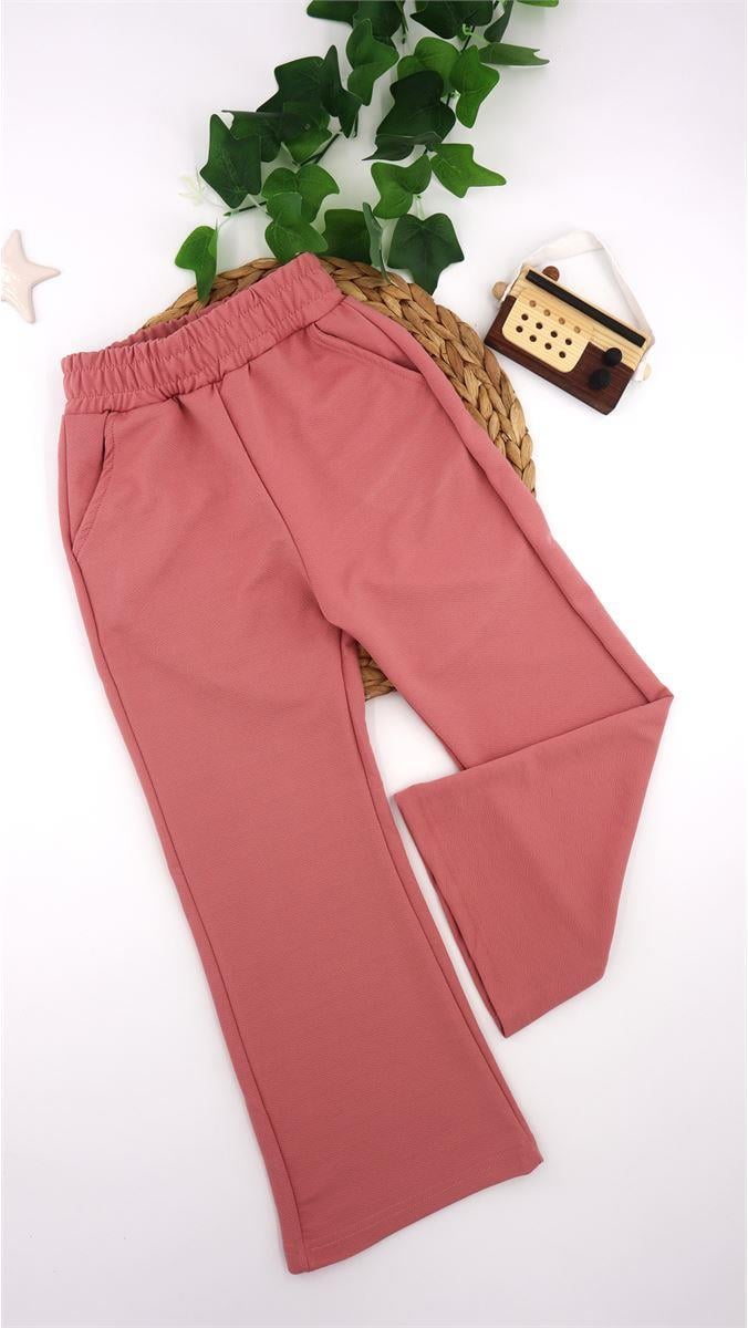20114 İspanyol Paça Krep Kumaş Kız Eşofman Altı GÜL KURUSU