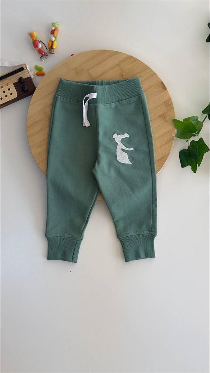 20126 Kuala Detaylı Cepsiz Ayıcık nakışlı Eşofman Altı (1-4 Yaş) YEŞİL