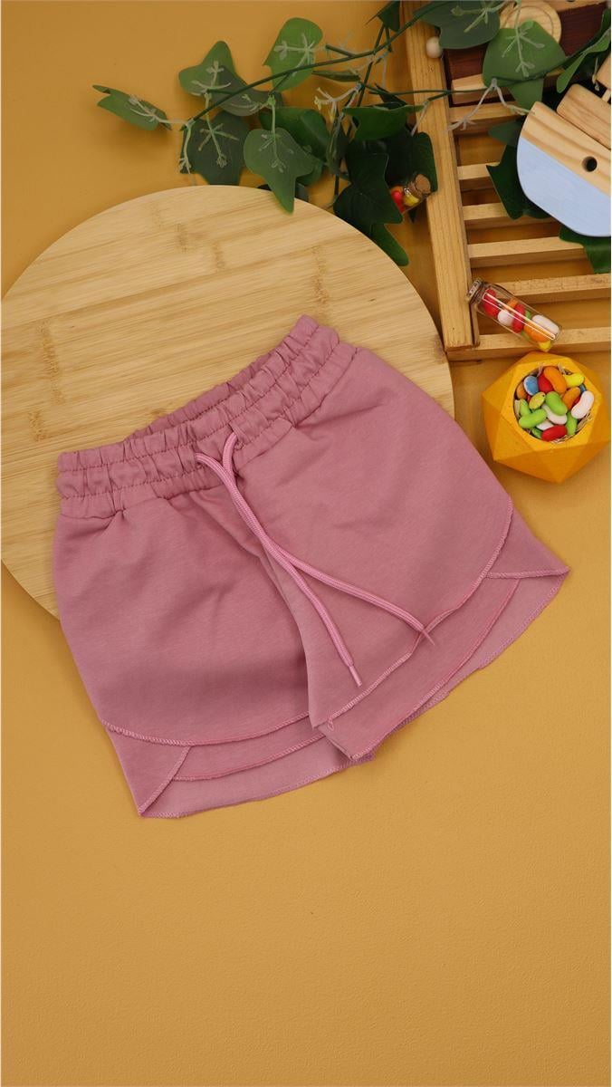 20130-1 Paça Oval Katlı Kız Çocuk Şort (9-12 Yaş) LİLA