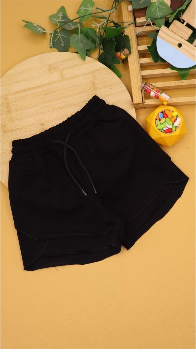 20130-1 Paça Oval Katlı Kız Çocuk Şort (9-12 Yaş) SİYAH