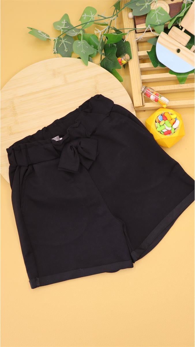 20140 Kemerli Fiyonklu Kız Çocuk Şort (13-16) SİYAH