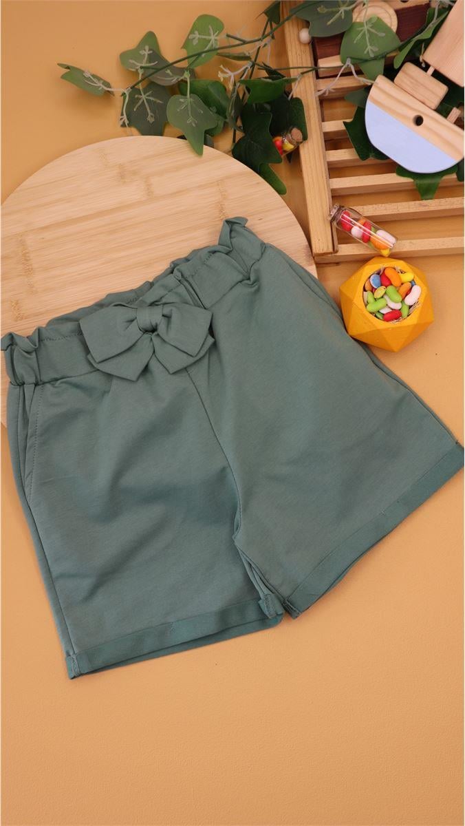 20140 Kemerli Fiyonklu Kız Çocuk Şort (13-16) YEŞİL