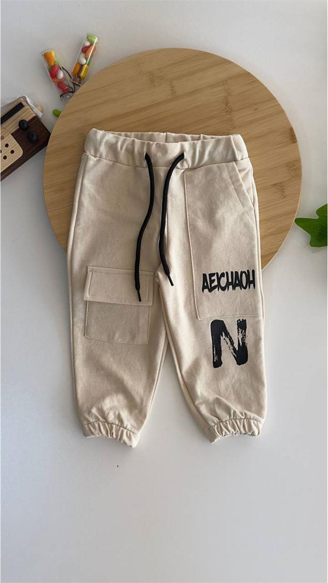 20155 Yazı Basklı Paça Lastikli Eşofman Altı (1-4 Yaş) KREM