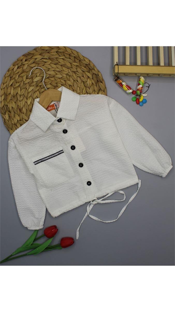 2016 Ön Cep Detaylı Bürümcük Gömlek BEYAZ