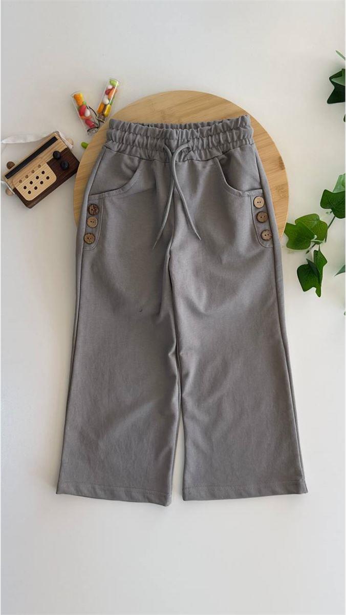 20166-1 Cep Altı Üç Düğmeli Kız Çocuk Eşofman Altı (8-12 Yaş) GRİ