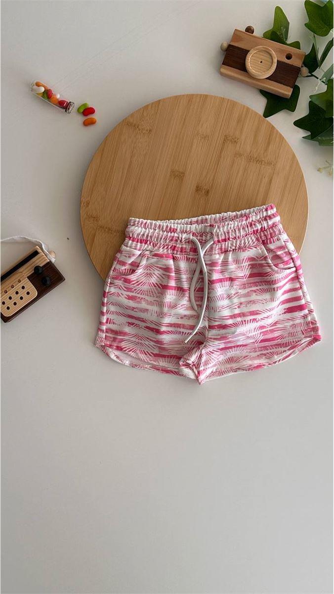 20189 Palmiye Desenli Şort (5-8 Yaş) PEMBE