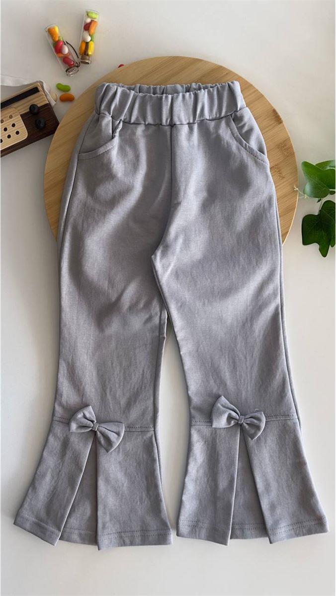 20235-1 Önde Fiyonklu Kız Çocuk Eşofman Altı (4-8 Yaş) GRİ