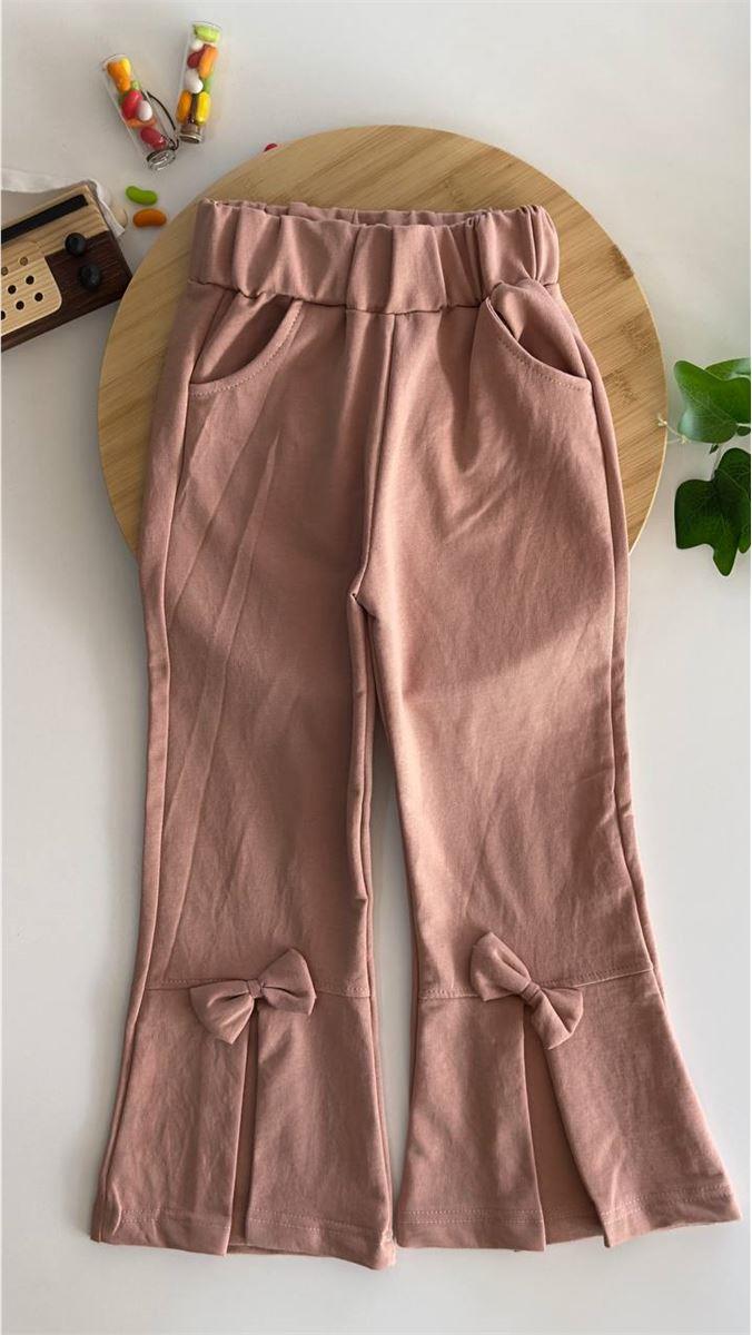 20235-1 Önde Fiyonklu Kız Çocuk Eşofman Altı (4-8 Yaş) KAHVERENGİ