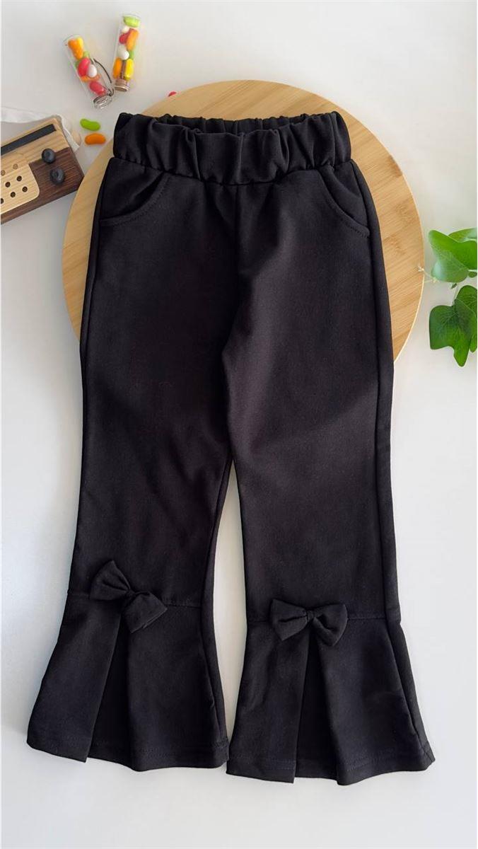 20235-1 Önde Fiyonklu Kız Çocuk Eşofman Altı (4-8 Yaş) SİYAH