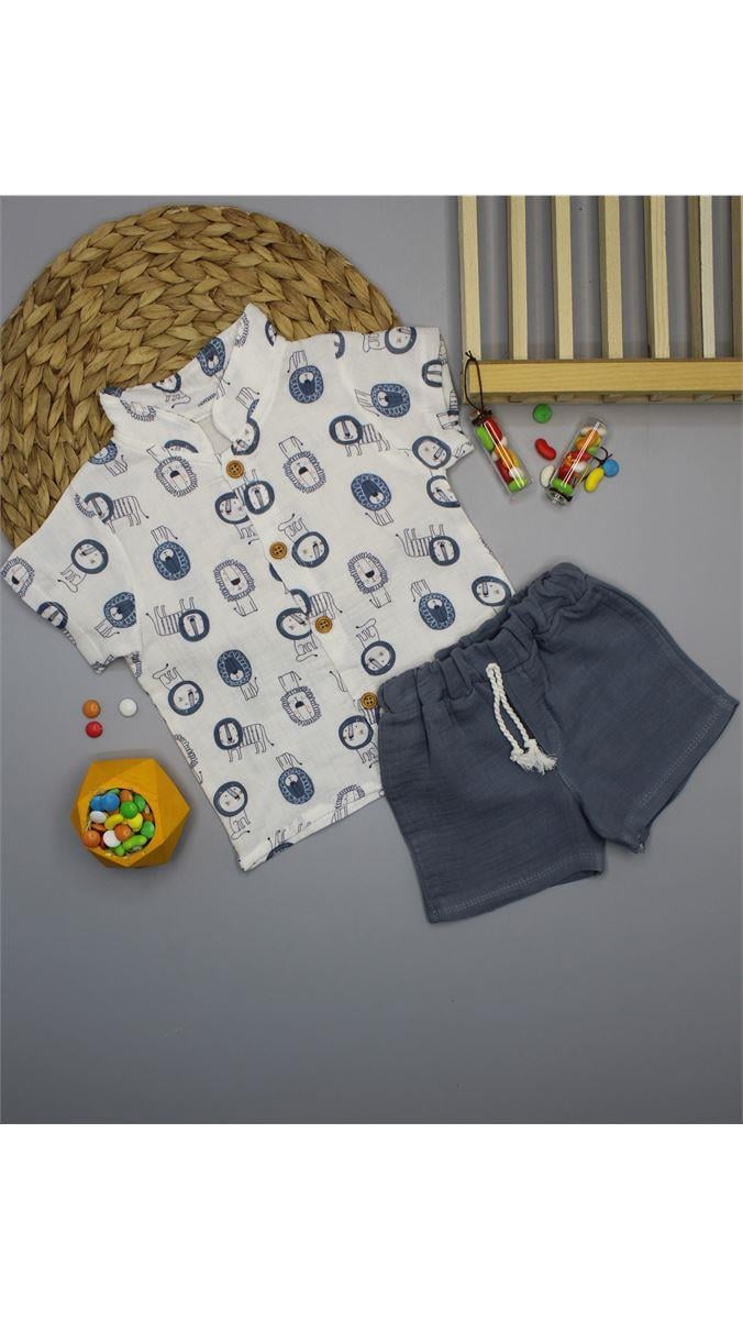 2024 Aslan Baskılı Müslin Takım MAVİ