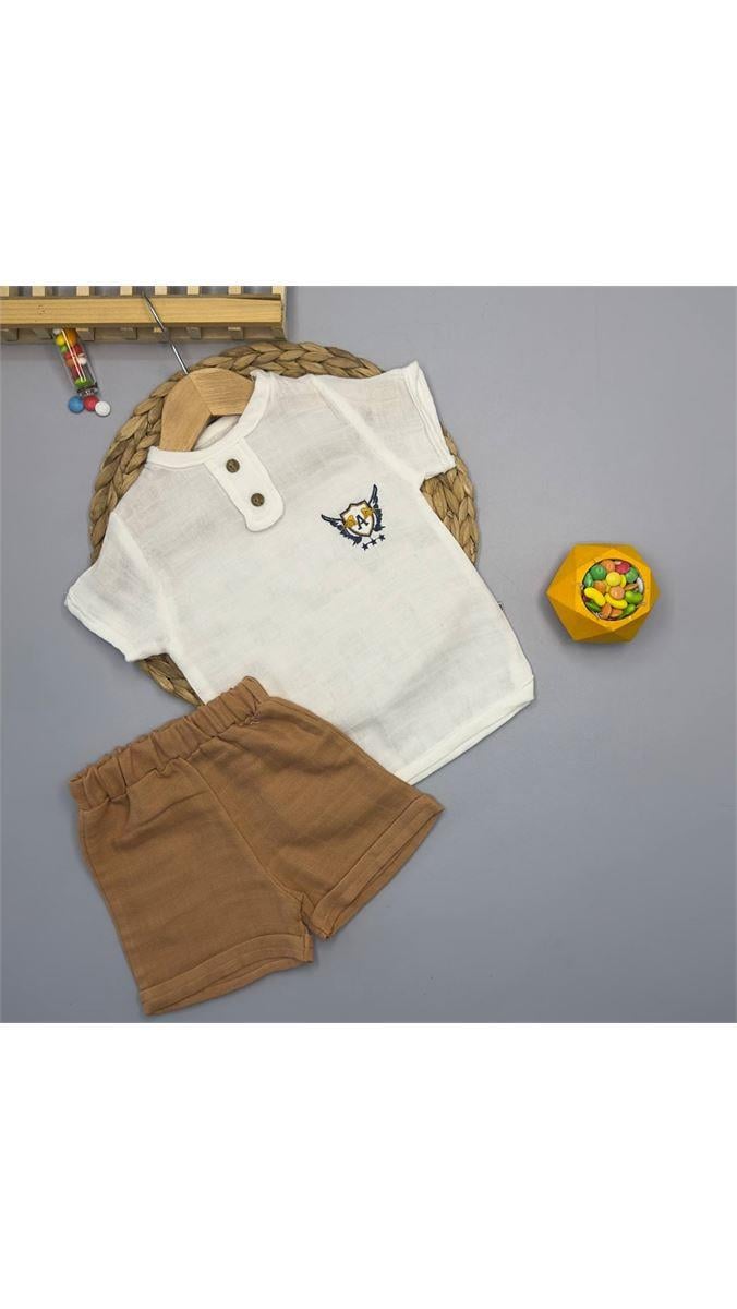 2045 A Nakışlı İkili Erkek Takım KAHVERENGİ