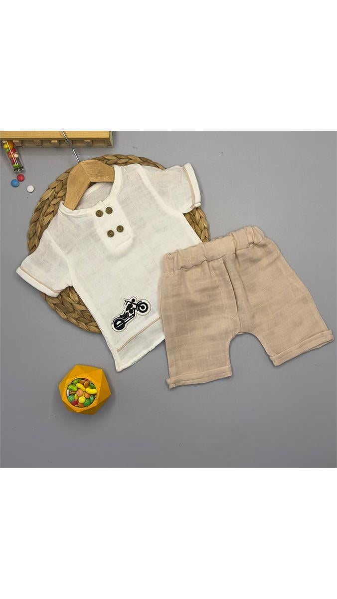 2046 Motor Nakışlı Erkek Takım BEJ