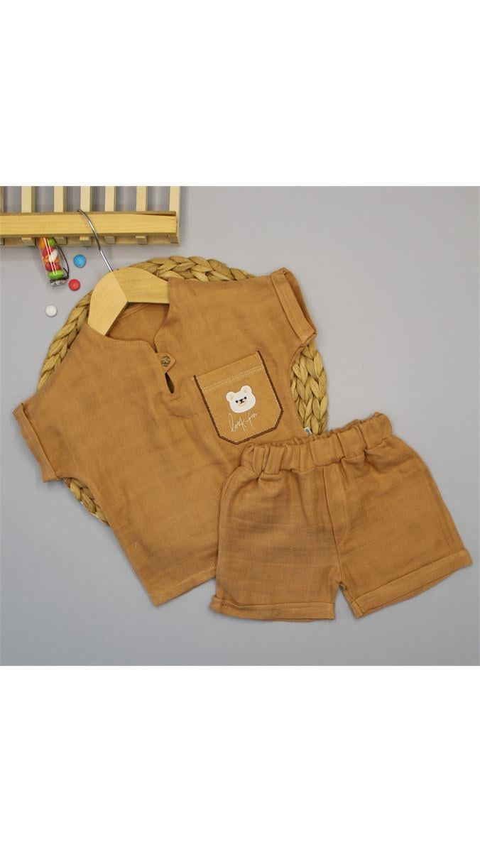 2049 Şortlu Müslin Takım KAHVERENGİ