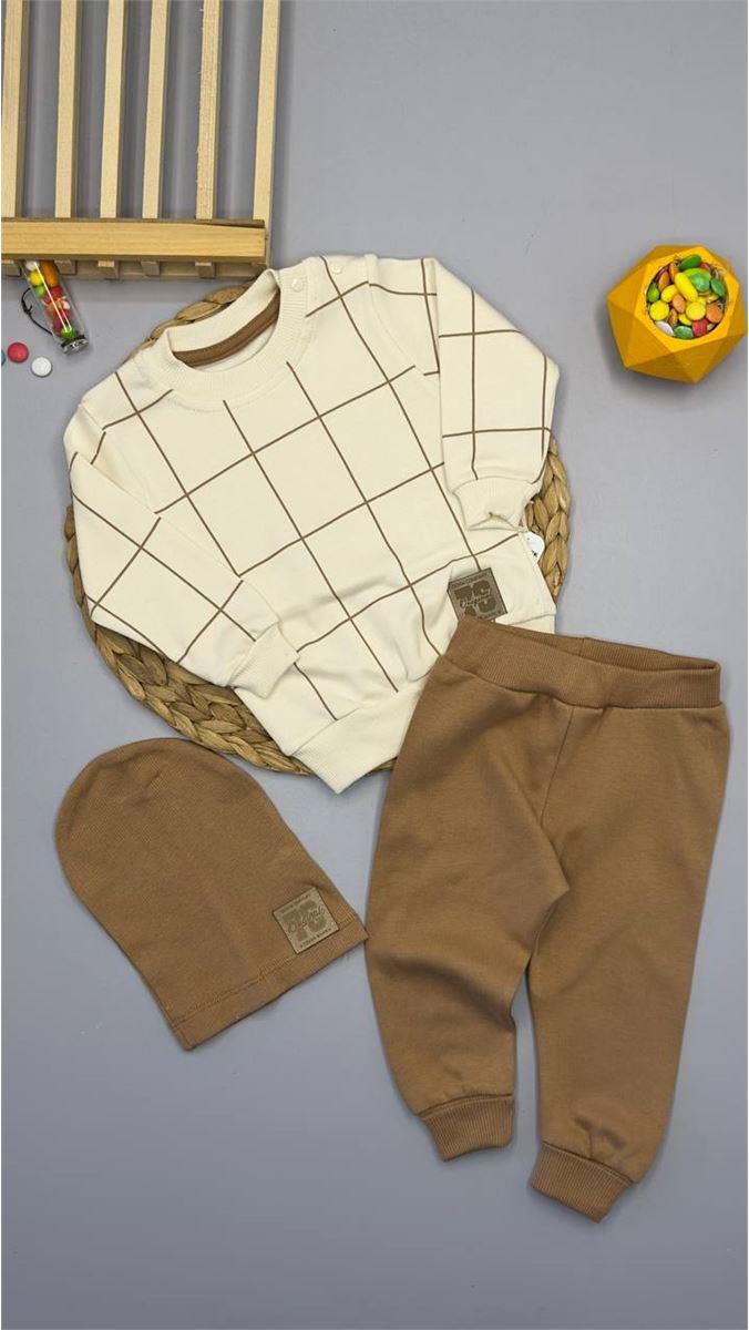2069 Arma Detalı Şapkalı Üçlü Erkek Takım KAHVERENGİ