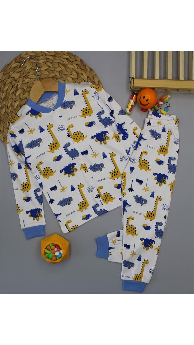 2094-3 Dinozor ve Timsahlı Pijama Takımı BEYAZ