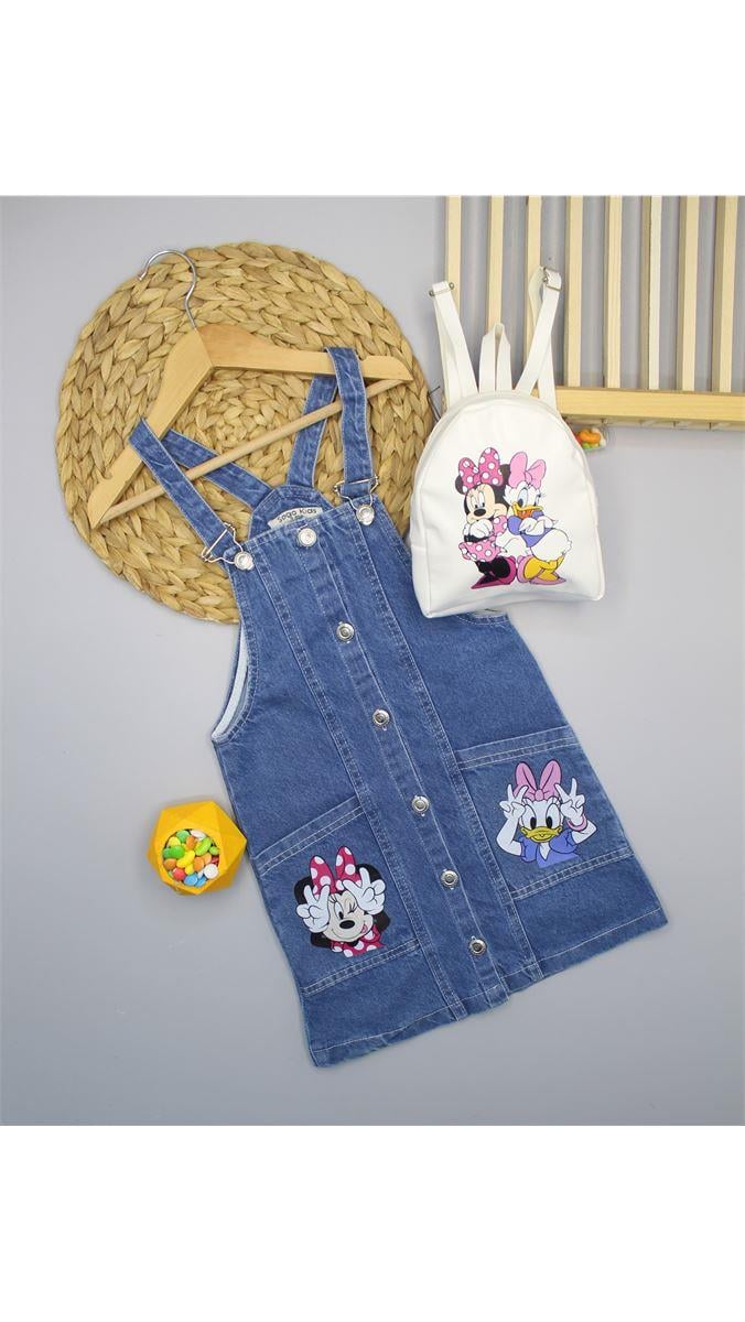 2129 Mickey Desenli Çantalı Kot Jile MAVİ