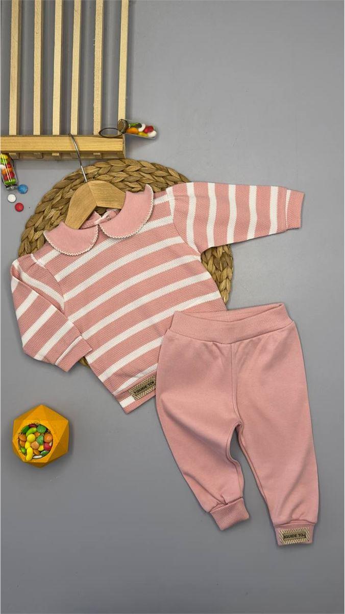 2178 Çizgili Kroşatalı Jakarlı Kız Takım PUDRA