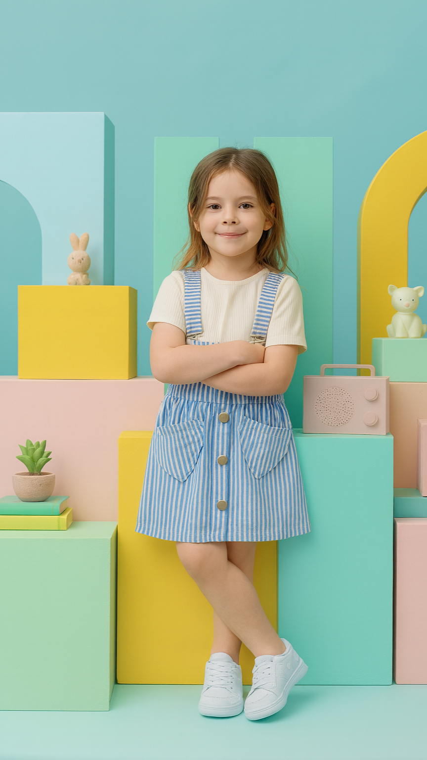 2210 Üst Kalp Detaylı Askılı Kız Salopet BEBEM