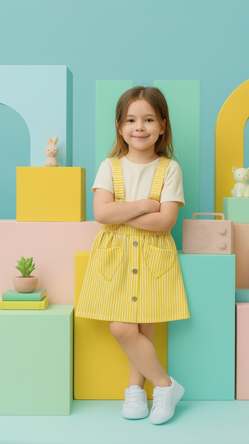 2210 Kalp Detaylı Askılı Kız Salopet SARI