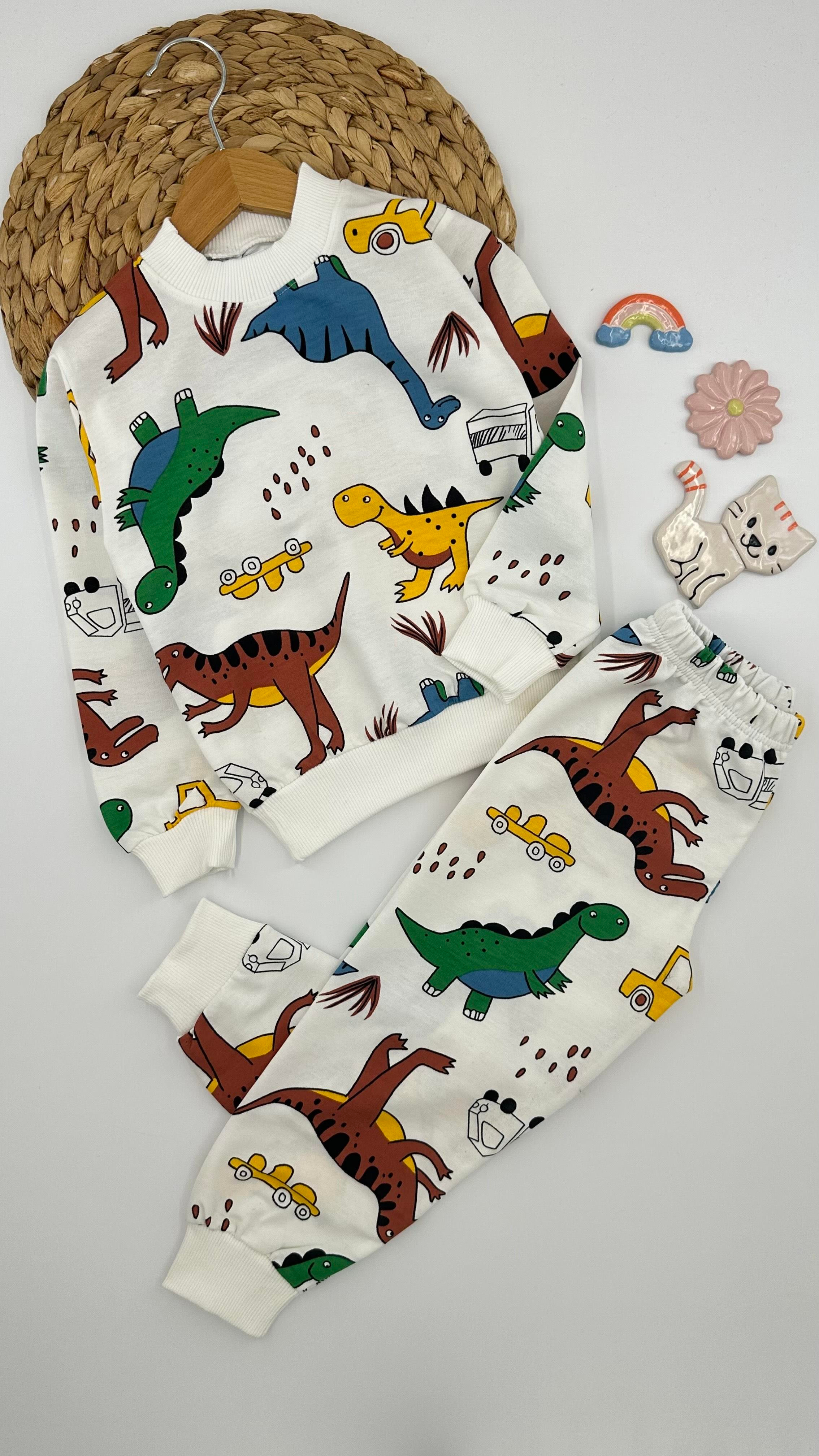 22205 Kamyonet & Dinzaor Desenli Erkek Çocuk Takım KREM