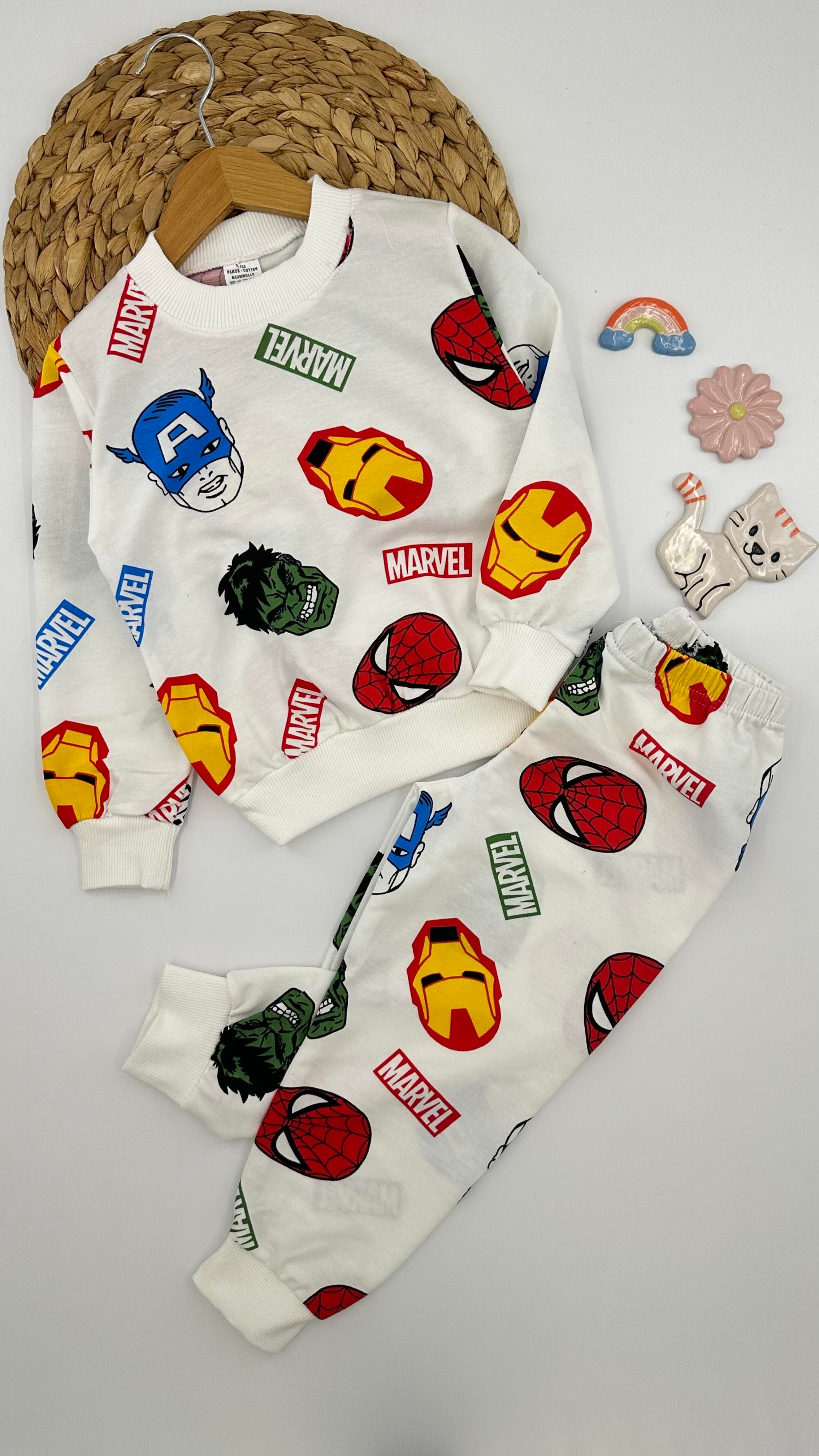 22205 Marvel Desenli Erkek Çocuk Takım KREM