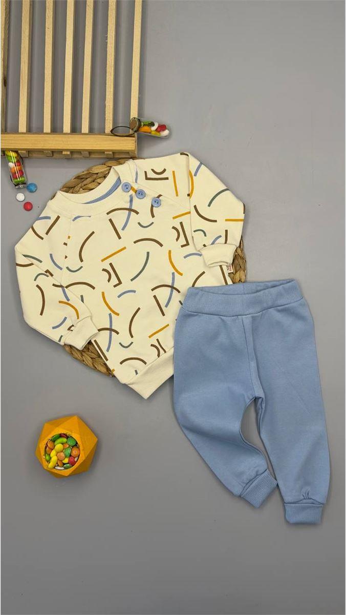 2237 Düğmeli Renkli Çizgi Baskılı Erkek Takım MAVİ