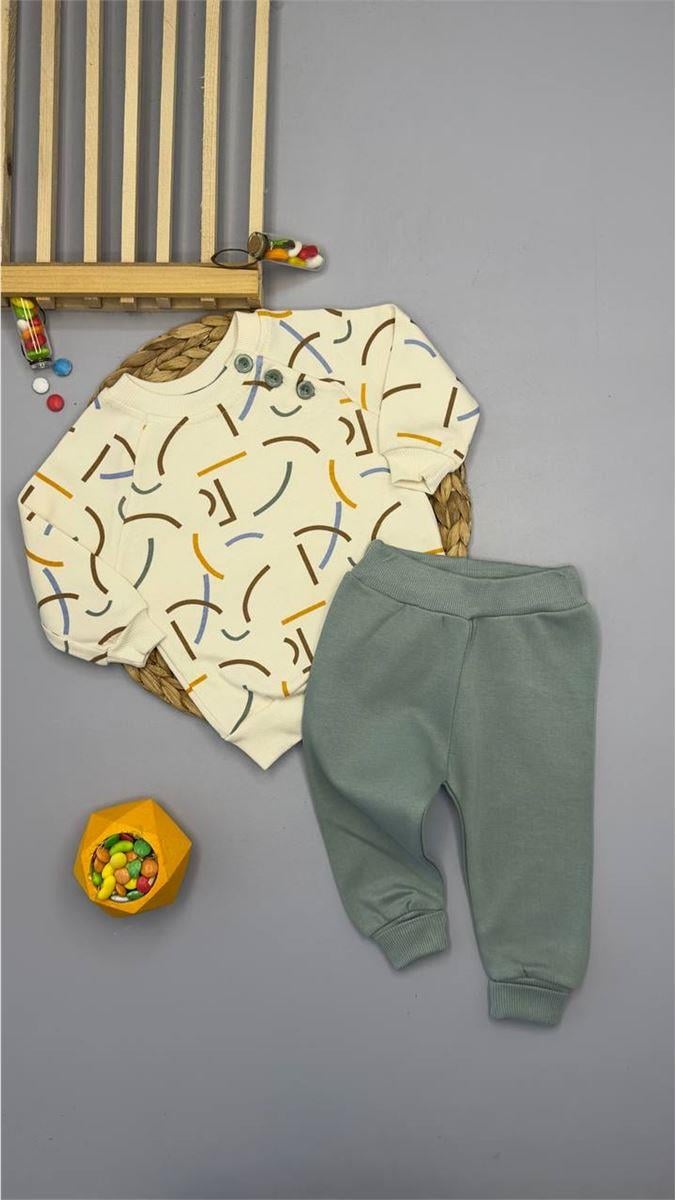 2237 Düğmeli Renkli Çizgi Baskılı Erkek Takım YEŞİL