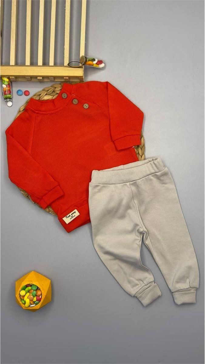 2252 Düğme Detaylı Erkek Takım KIRMIZI