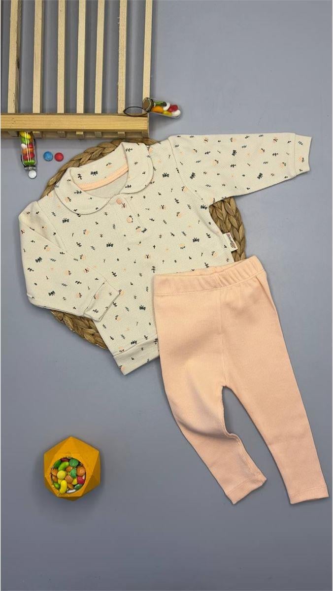 2268 Çiçek Desenli Yakalı Kız Takım SOMON